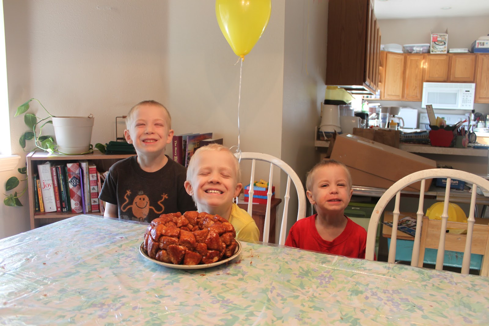 His breakfast request was monkey bread, I had to buy corn syrup for it as we don't have that in the house any more. I just told myself that at least I knew how much corn syrup and sugar was in it, unlike store bought monkey bread.